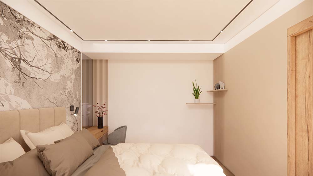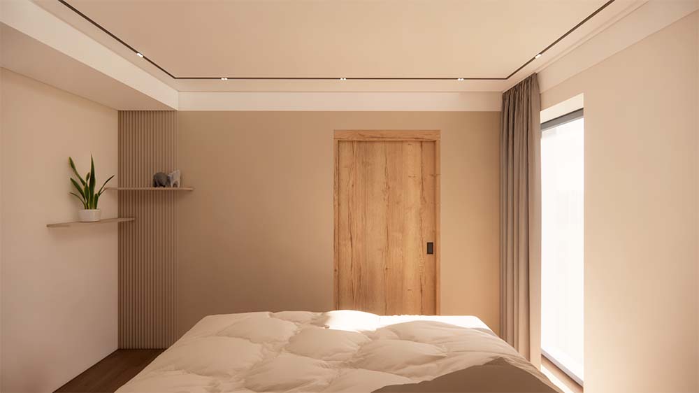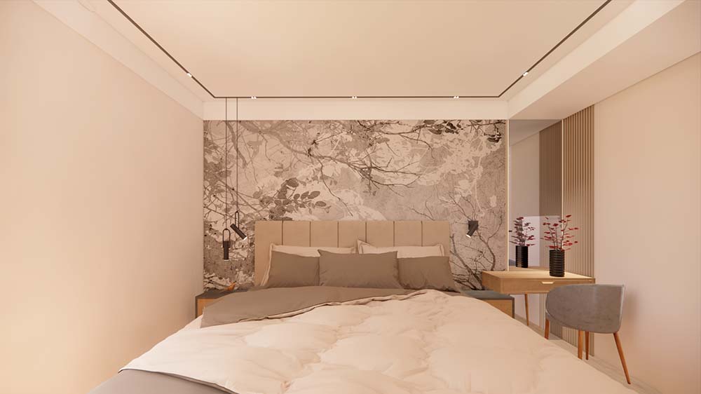 The bedroom has several lighting schemes, allowing for an intimate atmosphere as well as ideal conditions for reading, make-up or relaxation.