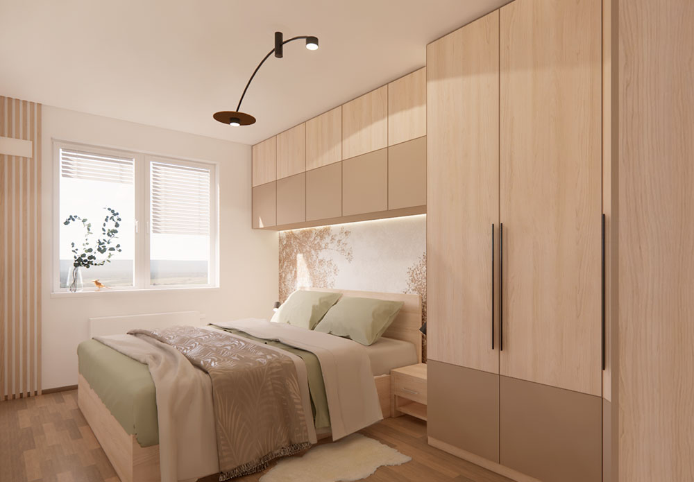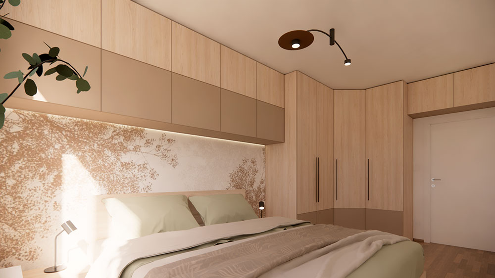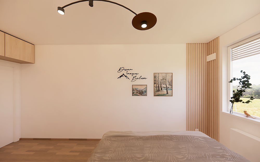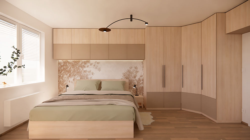 Přemýšlíte nad tím, jak proměnit svou ložnici v oázu klidu a harmonie? Tento projekt návrhu interiéru se zaměřil na vytvoření moderní ložnice v přírodním stylu, kde přírodní prvky a chytrá řešení úložných prostor hrají klíčovou roli.